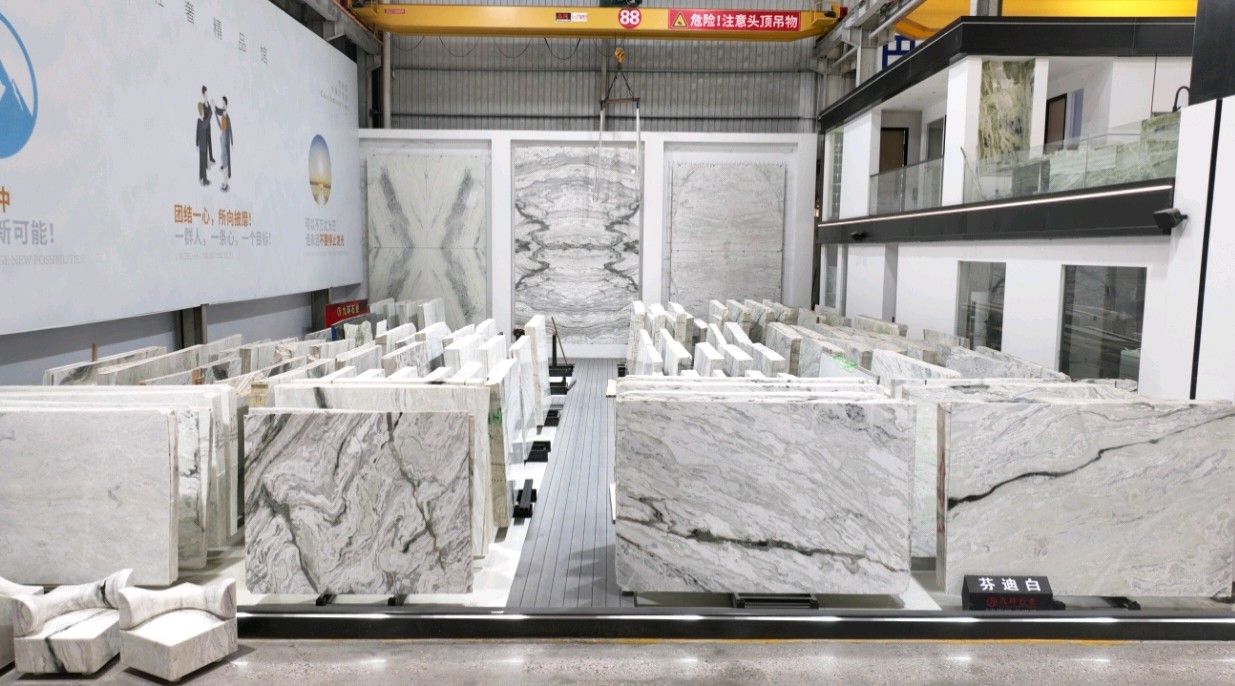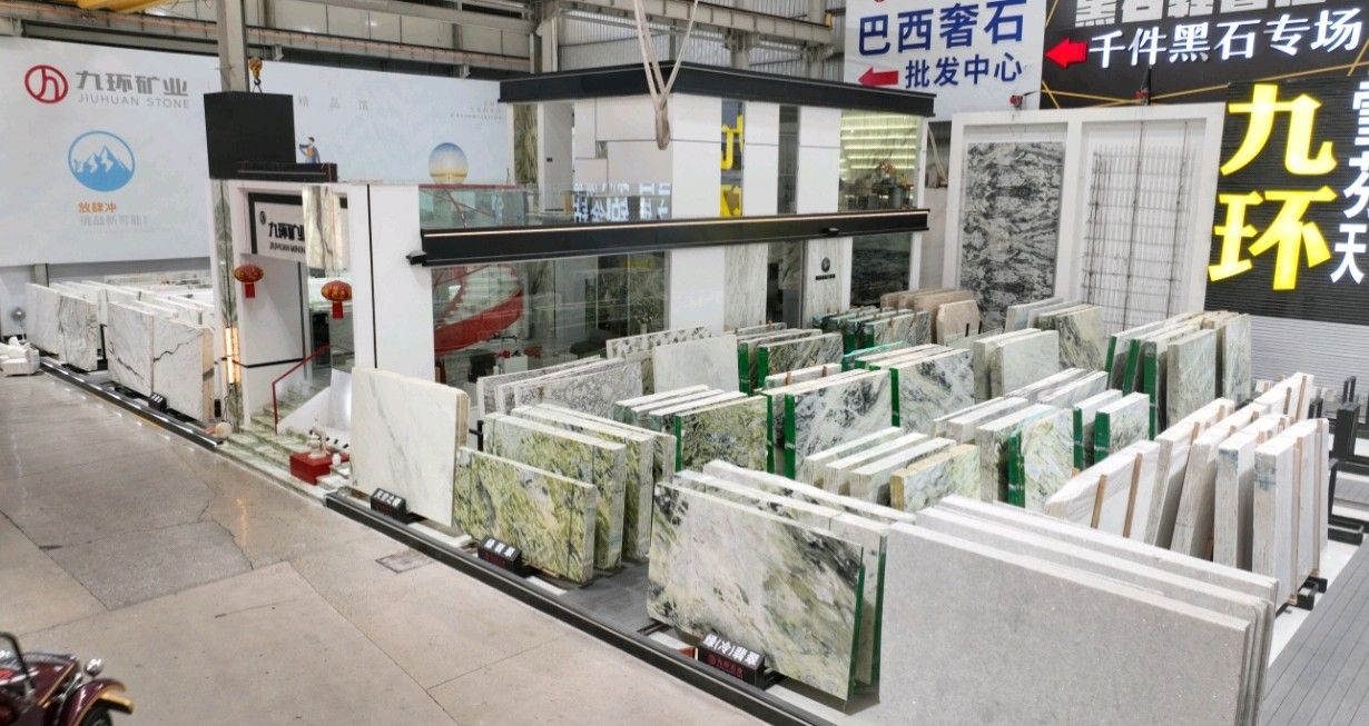 公司創(chuàng)建初期駐點于東升大板市場,隨著市場需求,不斷進行戰(zhàn)略布局,2016年駐點高時大板市場,2017年駐點藝興大板市場,同時期增加澳磊門店,2018年,九環(huán)增加遠達專場,擁有數(shù)百個架子位,憑借優(yōu)質(zhì)服務(wù)深受客戶認可與信賴。2019年,九環(huán)于順盛增加加工點,主要生產(chǎn)“水晶木紋”,年產(chǎn)量達15萬平方米。該年底順勢而上,增加均利廠、新寰宇廠及振南廠三個石材加工廠,并不斷拓寬市場品類,由原先單一的“水晶木紋”,又增拓“印度藍金沙”與“土耳其星月白”兩個大理石品種,年產(chǎn)量接近30萬平方米,公司經(jīng)營得到進一步優(yōu)化。2020年九環(huán)石業(yè)進軍南翼點,新增“卡索灰”及“古堡藍”兩個大理石品種,擁有自己的大型礦山開采權(quán),自主開采銷售,產(chǎn)品種類大幅度增加,業(yè)務(wù)領(lǐng)域進一步拓展。2021年至今,九環(huán)石業(yè)新增澳盛點,新增品種“卡地亞灰”包礦。至此,九環(huán)石業(yè)在“世界石都”水頭戰(zhàn)略版圖囊括了澳盛、新寰宇、東升、遠達等駐點,具備良好的區(qū)位優(yōu)勢,發(fā)揮著重要的協(xié)同效應(yīng)。\