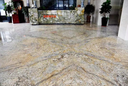 本公司擁有全球“巴哈馬金(金鉆花麻)”礦山,儲量豐富,礦體穩(wěn)定,用的開采技術年產大規(guī)格荒料10000m3以上?!鞍凸R金(金鉆花麻)”以其大氣磅礴的自然紋理,柔潤金色的色澤是您裝飾別墅、酒店、會所等高端場所的選擇。