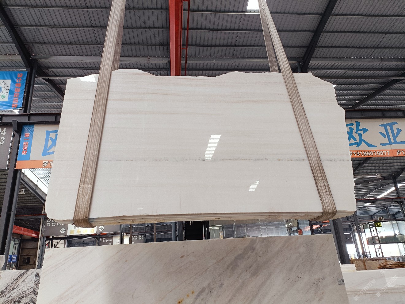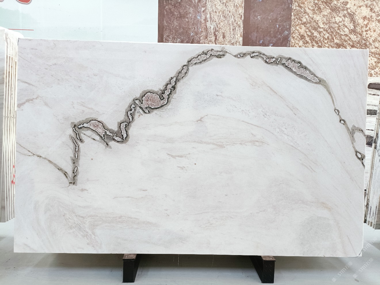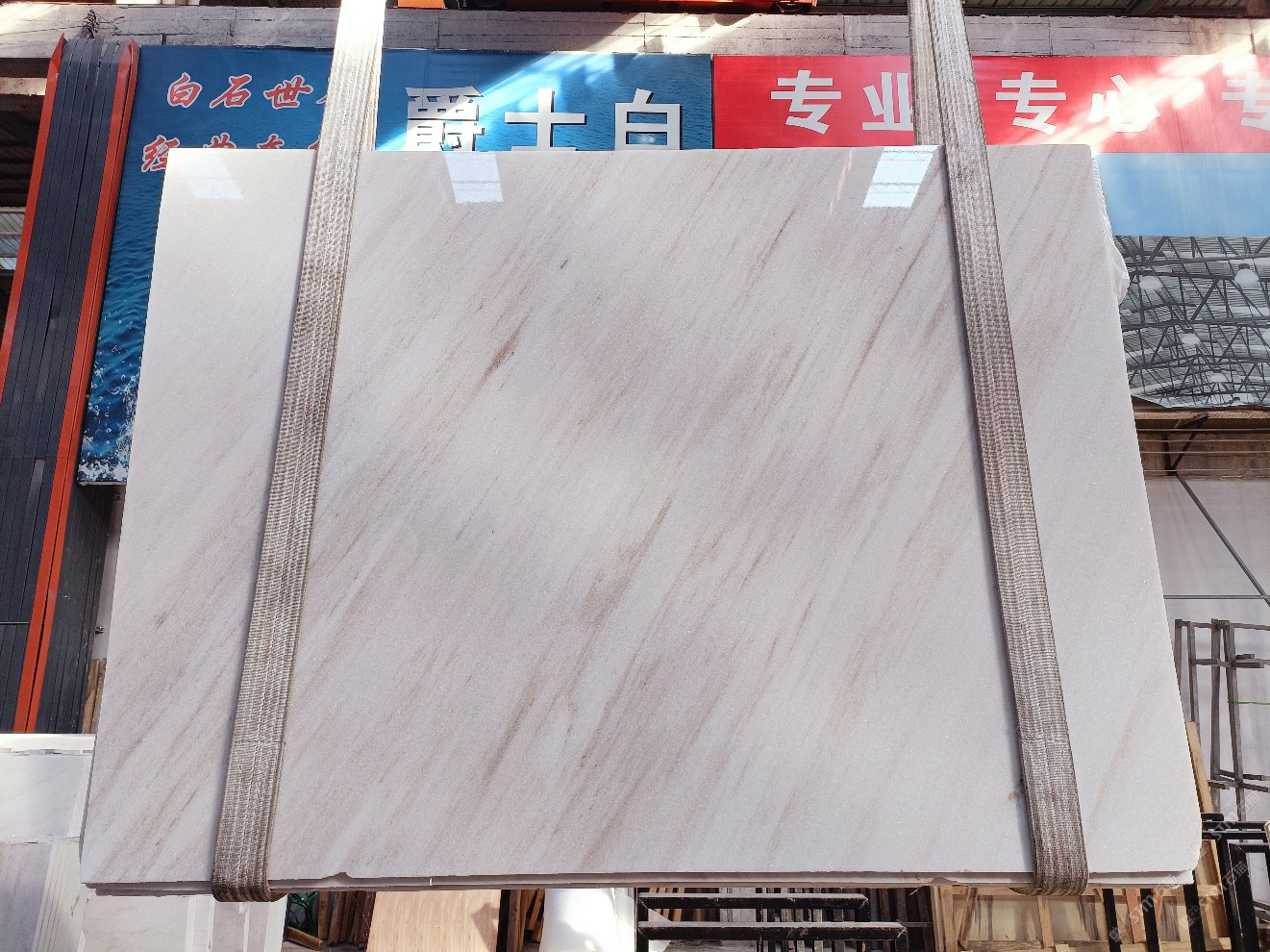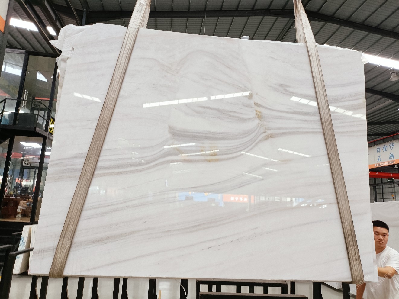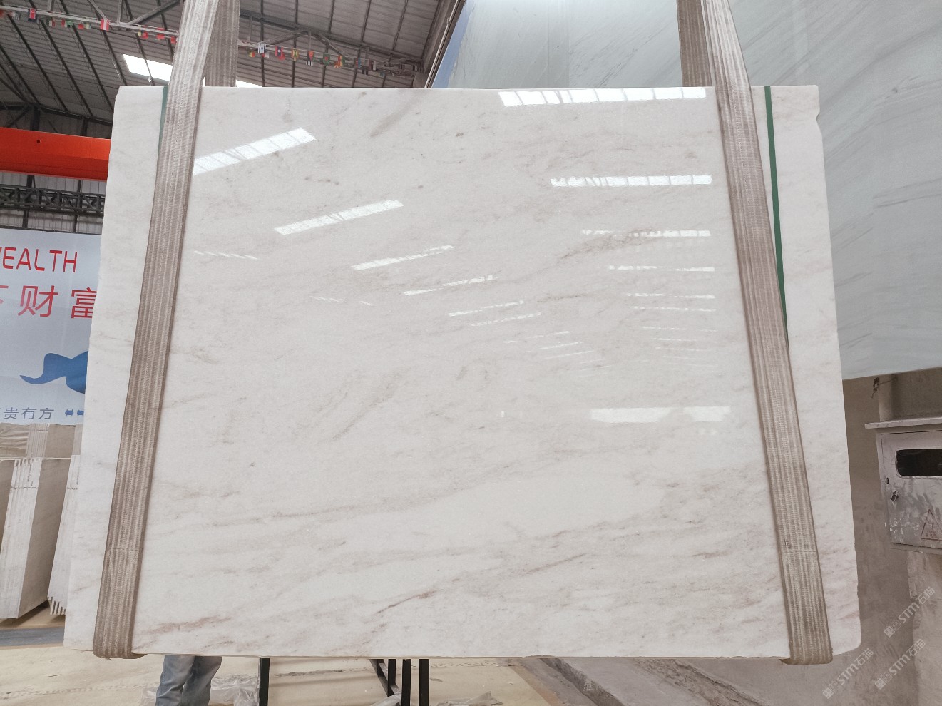 云浮站石材公司開(kāi)發(fā)的歐亞白獨(dú)立礦山,專(zhuān)屬道路,礦口面積約 725 畝,證件齊全。今年礦口開(kāi)采出直紋,亂紋優(yōu)質(zhì)大板材料,礦山采用單面墻平臺(tái)開(kāi)采方式,10臺(tái)繩鋸、5臺(tái)鏟車(chē)、5臺(tái)勾機(jī)、一臺(tái) 30 噸叉車(chē),共有職工40人,已有兩個(gè)開(kāi)采平臺(tái)。礦山已開(kāi)采多年,道路、設(shè)施都已成熟,現(xiàn)產(chǎn)能穩(wěn)定增長(zhǎng)。品質(zhì)非常穩(wěn)定,一石兩面分別可以產(chǎn)出直紋和亂紋兩種紋路,材質(zhì)為細(xì)膩的玉質(zhì)品體。