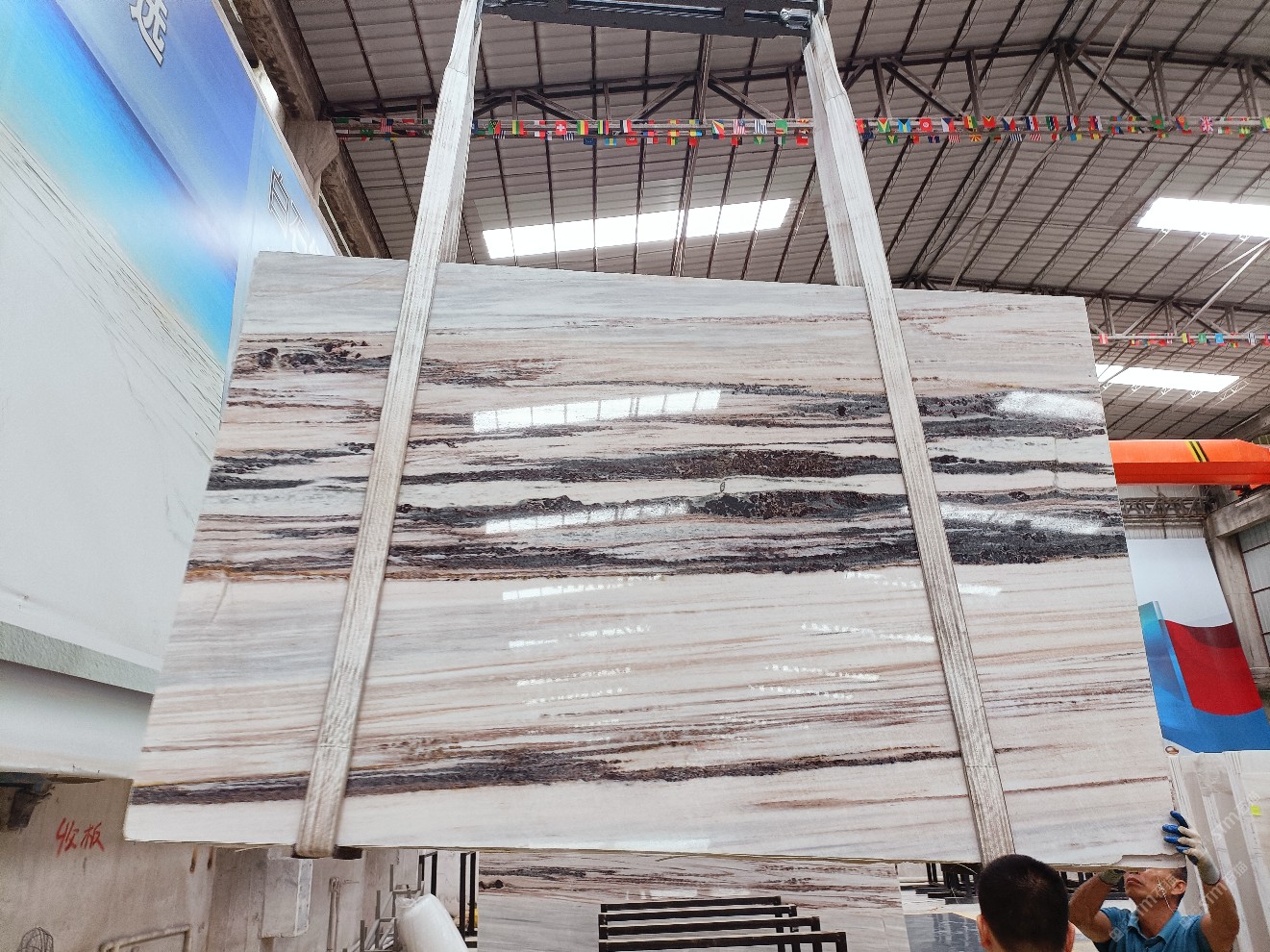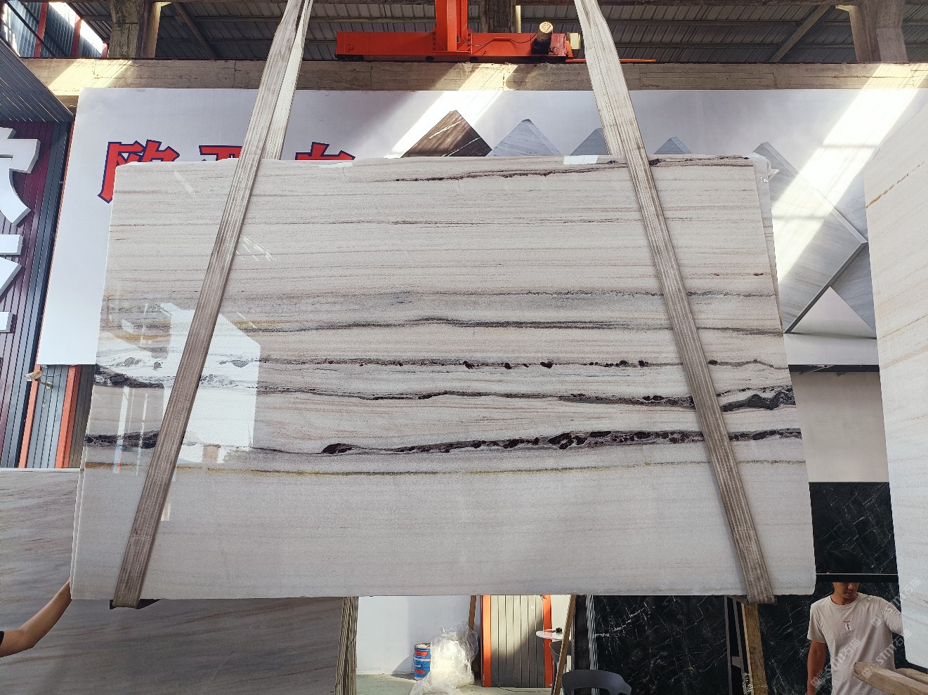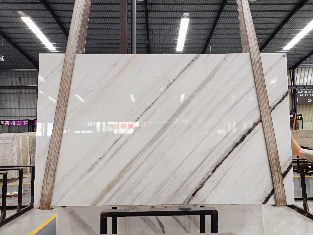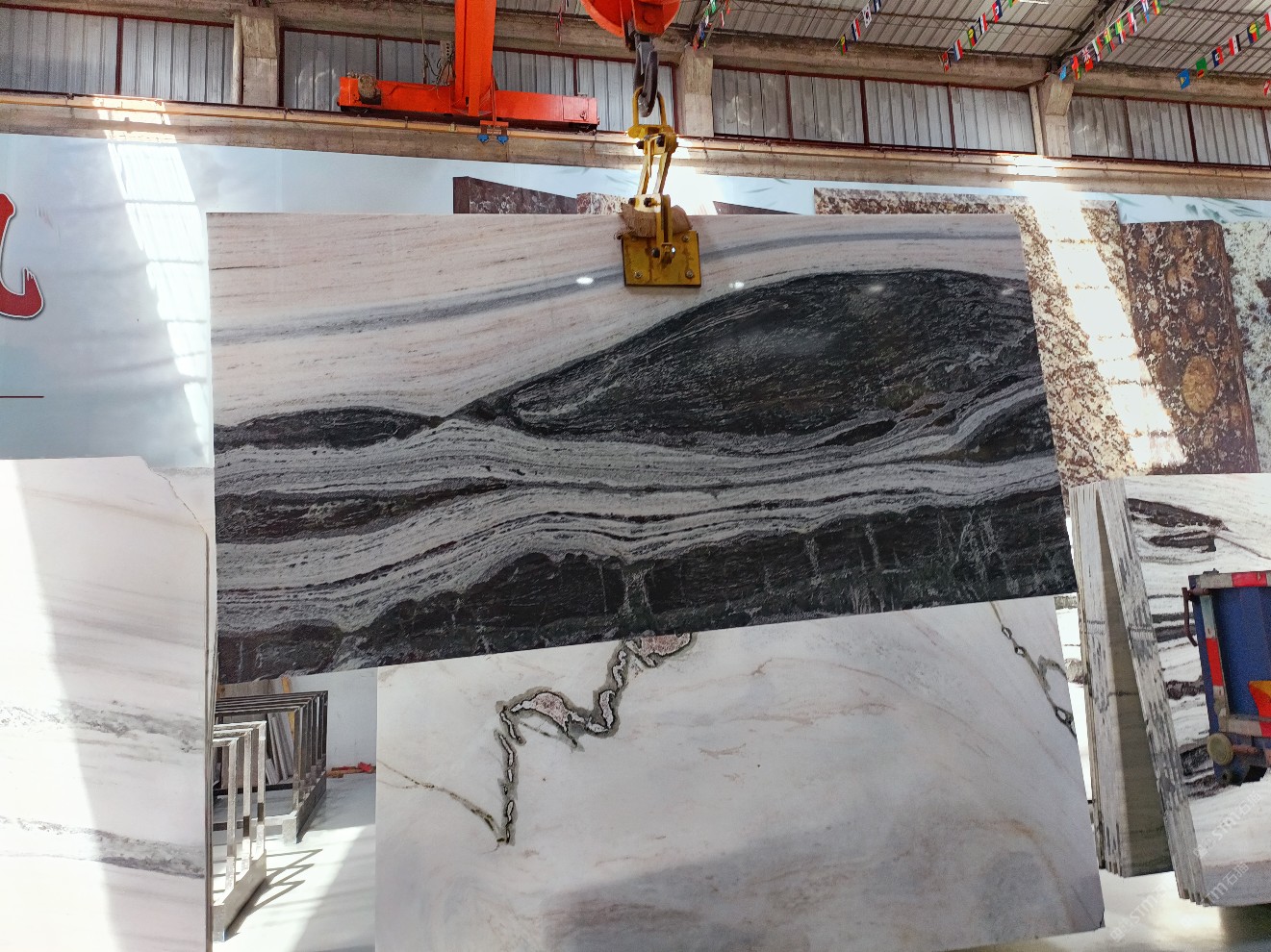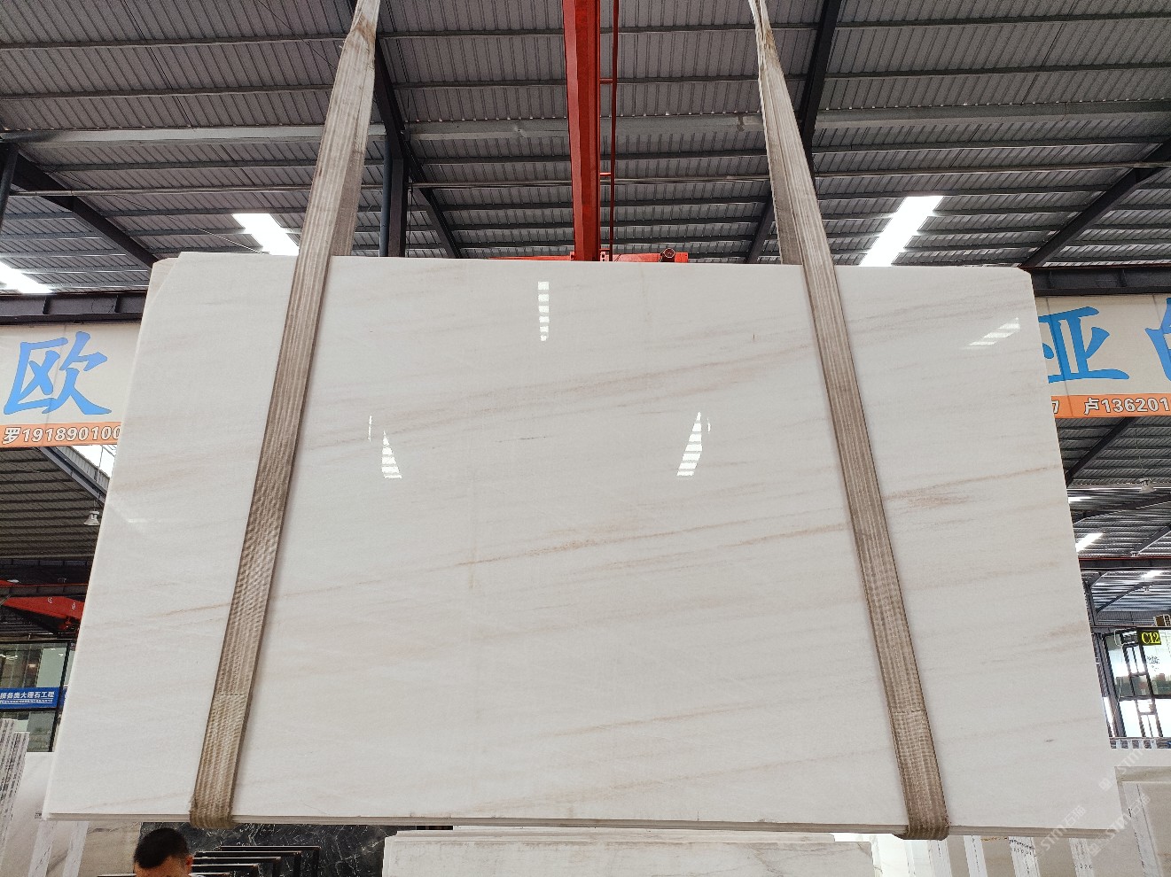 云浮站石材公司開(kāi)發(fā)的歐亞白獨(dú)立礦山,專(zhuān)屬道路,礦口面積約 725 畝,證件齊全。今年礦口開(kāi)采出直紋,亂紋優(yōu)質(zhì)大板材料,礦山采用單面墻平臺(tái)開(kāi)采方式,10臺(tái)繩鋸、5臺(tái)鏟車(chē)、5臺(tái)勾機(jī)、一臺(tái) 30 噸叉車(chē),共有職工40人,已有兩個(gè)開(kāi)采平臺(tái)。礦山已開(kāi)采多年,道路、設(shè)施都已成熟,現(xiàn)產(chǎn)能穩(wěn)定增長(zhǎng)。品質(zhì)非常穩(wěn)定,一石兩面分別可以產(chǎn)出直紋和亂紋兩種紋路,材質(zhì)為細(xì)膩的玉質(zhì)品體。