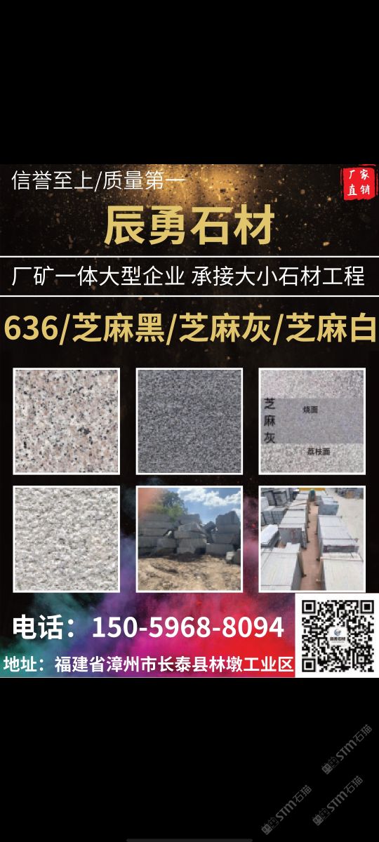 辰勇石材專營(yíng)長(zhǎng)泰芝麻黑G654,擅長(zhǎng)自然面背景墻,加工各種蘑菇石、10*10豆粒小方塊、荔枝面、菠蘿面、自然面、火燒板、拉絲面、盲人道、墓碑石、承接國(guó)內(nèi)外石材工程單。
