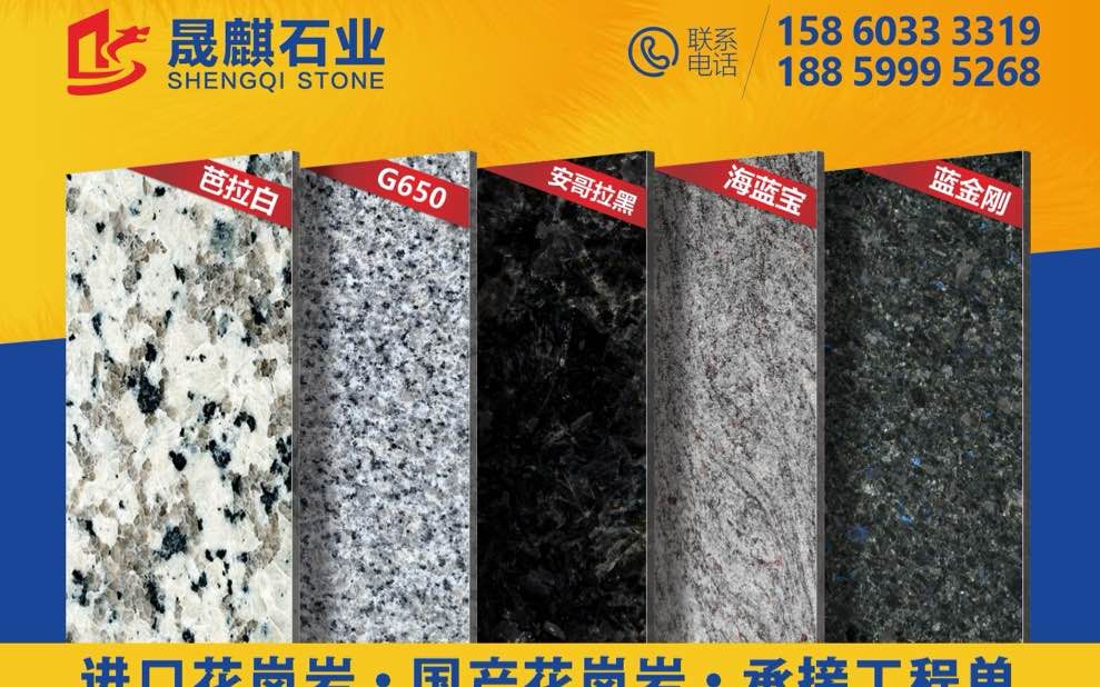 主營:進口:安哥拉黑、皇室啡、藍珍珠、新金彩麻、蝴蝶綠、大啡珠新礦、奧蘭多金麻、維納斯白麻、保利康、加多利、白世貿(mào)、美國白麻、美國灰麻、黑珍珠、黃蝴蝶、巴西金、愛迪達、金鉆麻、世貿(mào)金麻、白玫瑰、深紫點、中紫點金麻、老礦樹掛冰花、英國棕、銀珠、鐵灰、淺紫點、墨綠麻、老綠星、金鉆麻、紅鉆、啡鉆、大啡珠、印度白金、幻影藍、德黑蘭、皇家藍、桃木珍珠、藍金剛、藍月亮、特巴斯金、娛樂金麻、印度黑、細啡珠、黑水晶、七彩啡珠、紫點白麻、橄欖綠、鉑金鉆、樹掛冰花、黑棕 國產(chǎn):古典灰G650、泉港蝦紅、海南G654、福建芝麻灰G688、蝦紅G681、安溪紅G635、喬治亞灰、銹石G682、古典灰麻、藍寶石、石井銹、小光山蝦紅、G617、G636、G606、芭拉白、大白花、G655、漳浦紅G648