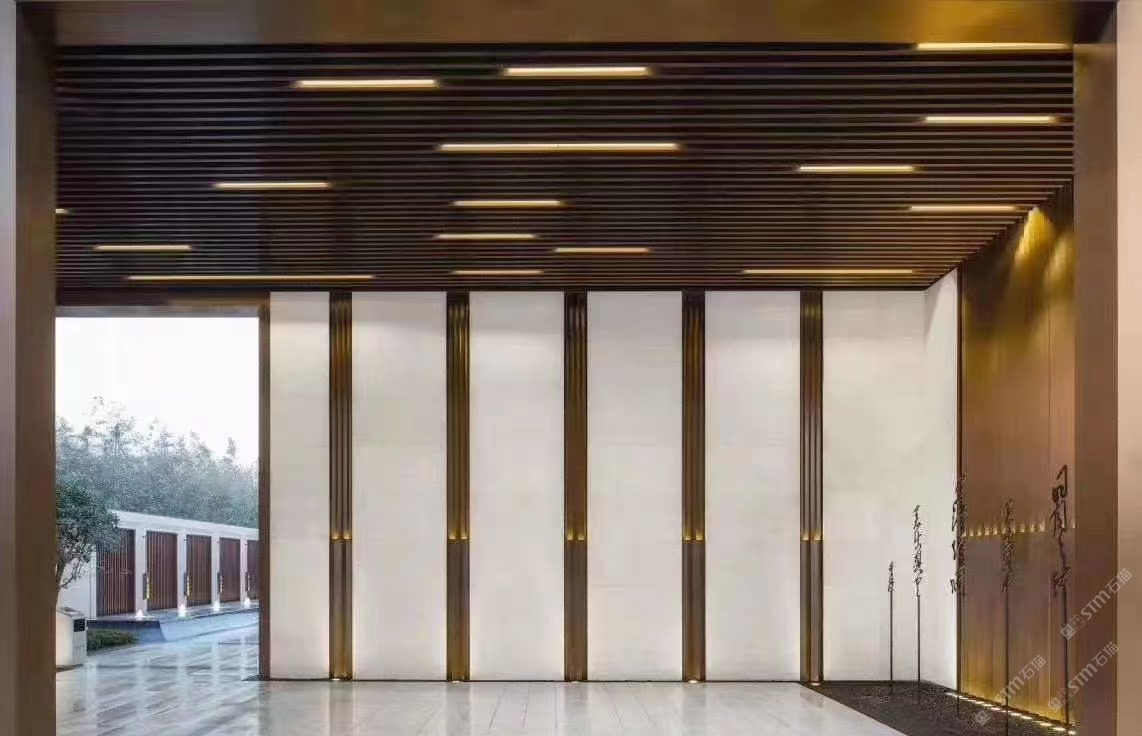 發(fā)布信息: 幕墻干掛選用沉香米黃,地面鋪裝選用福鼎黑、芝麻灰、芝麻白。