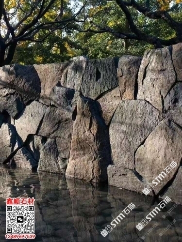 芝麻黑自然面背景墻流水石水景石材流水幕墻石皮背景墻