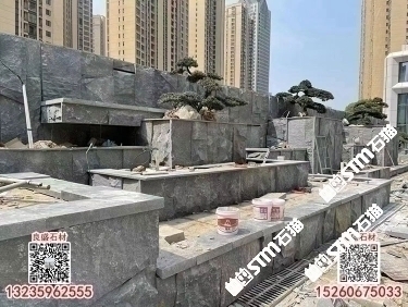 首頁 > 案例 > 芝麻黑水池水景石材異形加工定制G654流水石背景墻