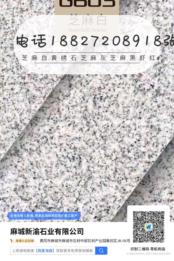 芝麻白…黃繡石…芝麻灰…芝麻黑 中國黑 蝦紅……廠礦直銷 價格優(yōu)惠 主營干掛,地鋪,路沿石,蘑菇石,火燒面,光面,荔枝面,機切面,自然面,異形加工等各種規(guī)格板材。承接園林,廣場外墻干掛等各種工程應用板材。規(guī)格齊全,薄利多銷 保質保量,歡迎各地老板前來參觀考察 地址…湖北省麻城市…中部石材產業(yè)園。電話15586518887&17671069740張先生(微信同號)