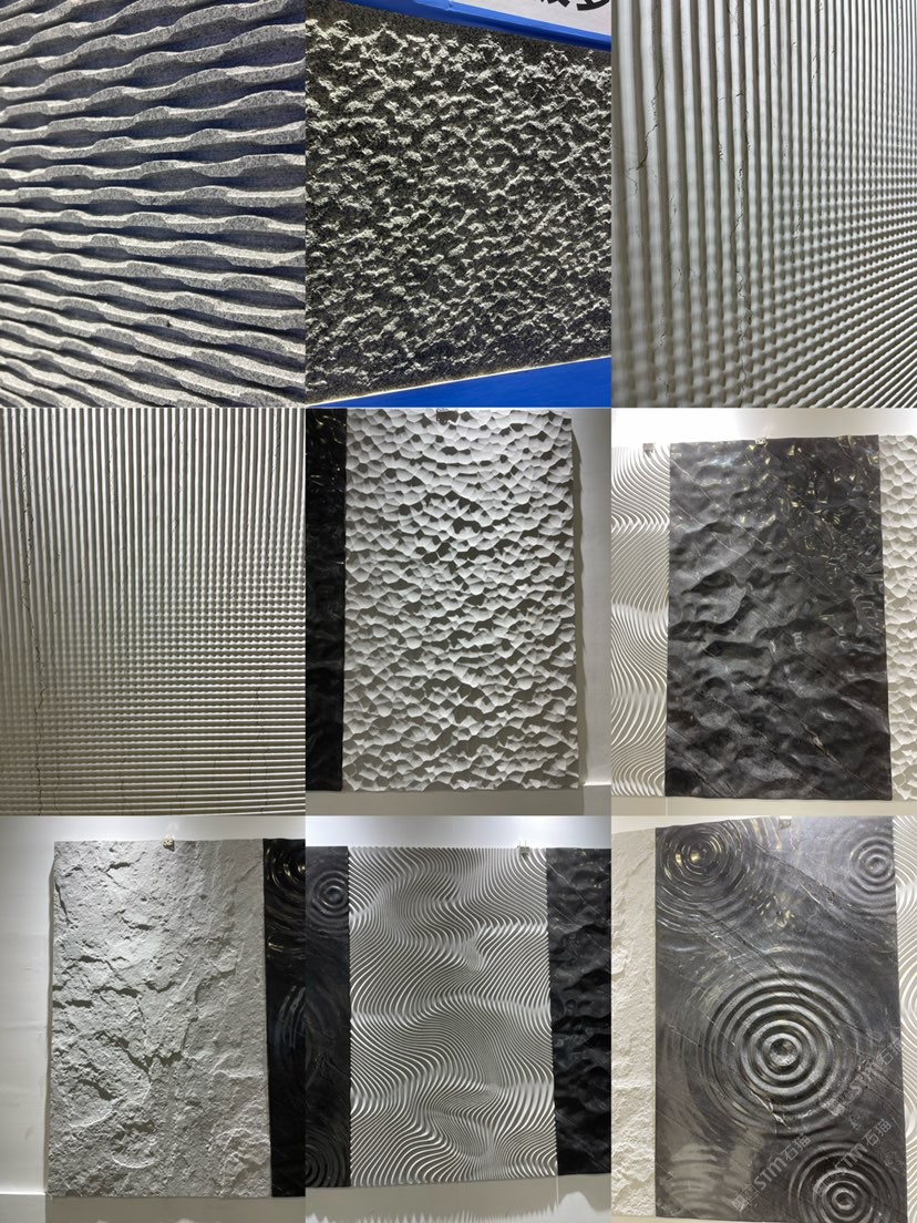 水波紋 自然面 斧鑿面 菠蘿面皮革面黑金沙雕刻訂制