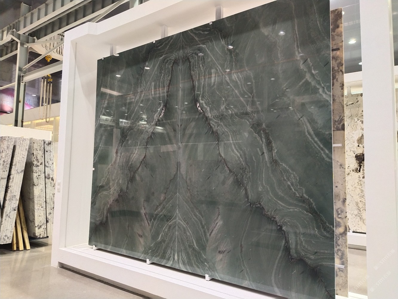 商圈 > 大理石 > 新正大奢石館[奢石品牌]龍紋綠背景墻山水畫。