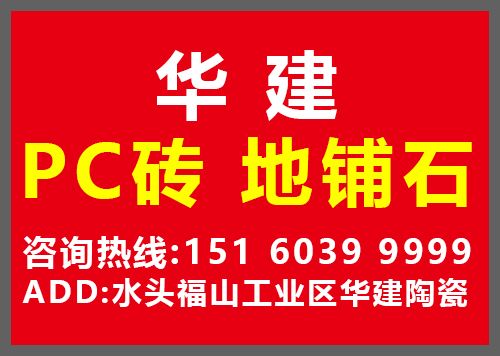 華建PC磚地鋪石 聯(lián)系人:蔡先生    151****9999 查看 手機(jī)號(hào)碼:無 主營(yíng)范圍: 大板批發(fā)、荒料、其他、花崗巖加工、大理石加工、 企業(yè)地址:福建泉州水頭福山工業(yè)區(qū)華建陶瓷