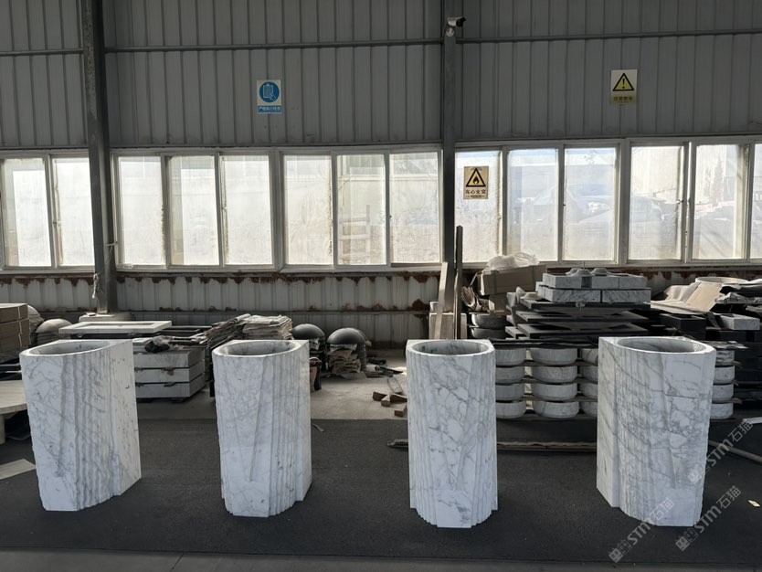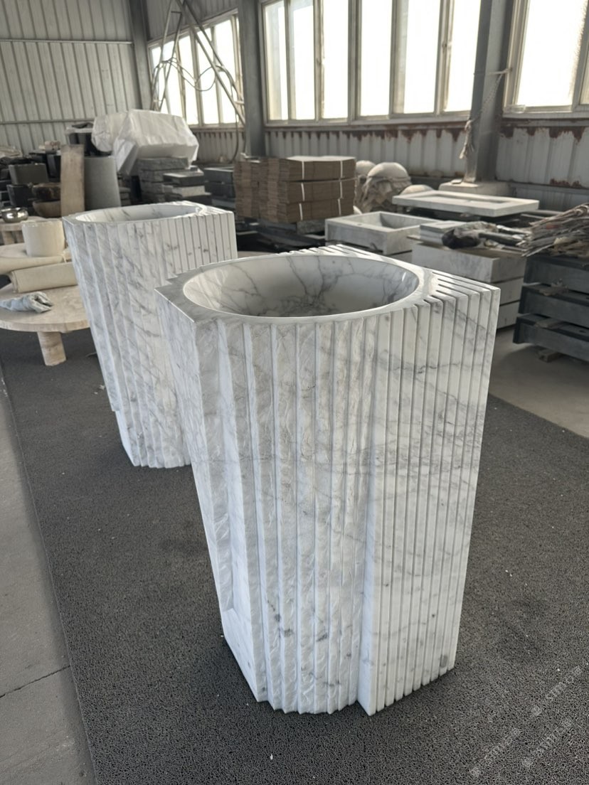 卡拉拉白柱盆 洗手盆 石材衛(wèi)浴四件套