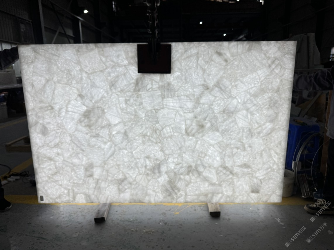 發(fā)光白水晶大板定制,透光半寶石板材,透光奢石定制
