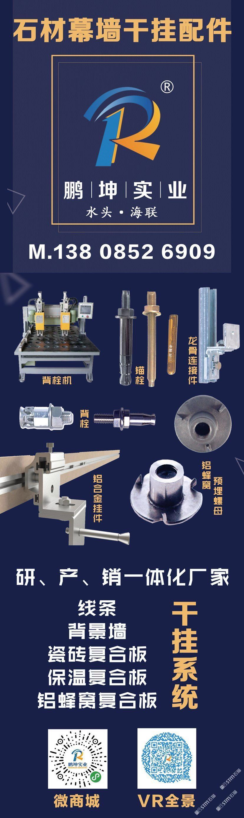 發(fā)布信息: 石材干掛系統(tǒng)、專利背栓、鋁蜂窩預(yù)埋螺母、龍骨連接件、背栓機(jī)、線條鋁合金掛件等,【水頭生產(chǎn)企業(yè)】大型房地產(chǎn)幕墻公司配套,別墅干掛系統(tǒng):王13808526909