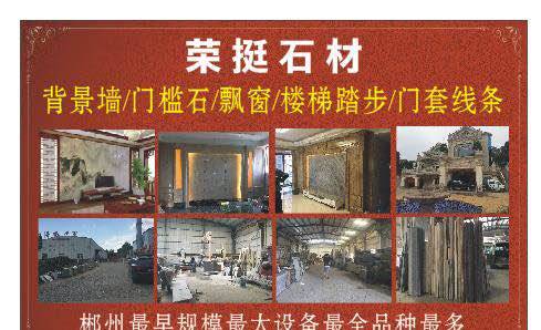 郴州市榮挺石材有限公司 聯(lián)系人:鄧總    159****6988 查看 手機號碼:無 主營范圍: 大板批發(fā)、大理石加工、花崗巖加工、異型加工、石材工藝品、 企業(yè)地址:湖南郴州北湖區(qū)榮挺石材有限公司