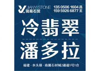 簡(jiǎn)易石貿(mào)主營(yíng)產(chǎn)品:新冷翡翠,藍(lán)色多瑙河4,云中翡翠,潘多拉(國(guó)產(chǎn))企業(yè)地址:福建泉州南安市新大路弘一三期2號(hào)門左手邊第一家