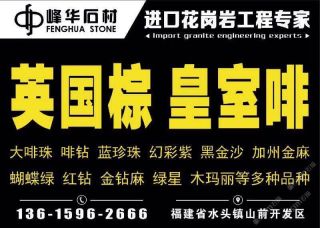 福建省南安市峰華石材有限公司主營產(chǎn)品:安哥拉黑,英國棕,大啡珠,加州金麻,綠星,木瑪麗,樹掛冰花,蝴蝶綠,紅鉆,高蛟紅,銀珠3,啡鉆(白底),南非紅,鐵灰,皇室啡,駱駝棕,巴西金麻,啡鉆,金鉆麻,墨綠麻,幻彩紫,黑金沙,加州金麻(黑底),加州金麻1,英國棕1,英國棕3,英國棕2,英國棕(4號(hào)礦),英國棕(澳凱礦 黑底),英國棕(紅),英國棕(澳凱礦),英國棕HL礦,安哥拉黑(黑水晶),安哥拉黑鉆,黑水晶,美國白麻,芭蕉黃,美國灰麻,巴西金,幻彩紅,皇室啡3,皇室啡5,皇室啡(荔枝面),皇室啡(火燒面),皇室啡2,皇室啡-1,金鉆麻(巴西),金山麻,金山麻1,金山麻(巴西),白玫瑰(巴西),白玫瑰(花崗巖),白玫瑰3,墨綠麻(巴西),駱駝棕1,綠星1,黑金沙(中花),黑金沙(中細(xì)花),皇室啡1,銀珠,英國棕(老礦),英國棕(黑底),英國棕KR礦,英國棕(老棕),英國棕KL礦,英國棕(黑紅),英國棕(DX礦),英國棕(淺紅)企業(yè)地址:福建南安水頭后房工業(yè)區(qū)